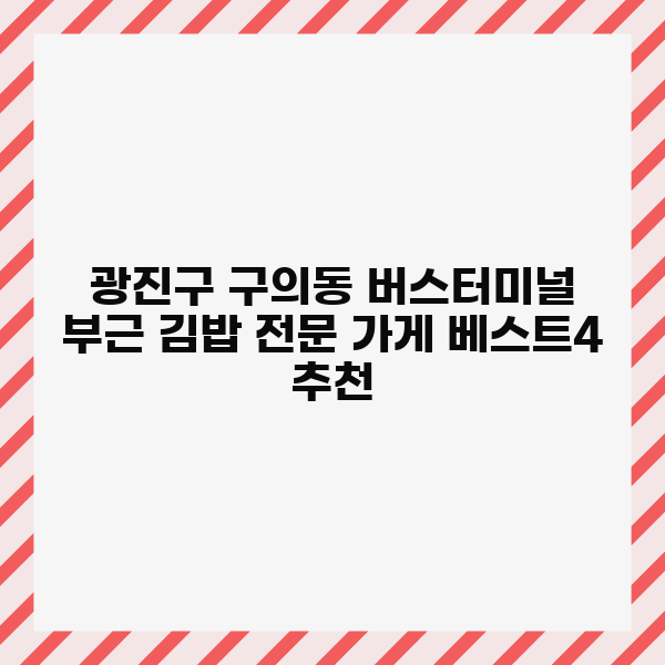 오늘 소개해 드린 광진구 구의동 버스터미널 부근의 김밥 전문 가게들이 여러분의 선택에 도움이 되셨기를 바랍니다.