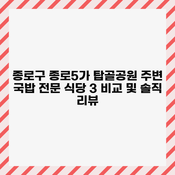 종로구 종로5가 탑골공원 주변 국밥 전문 식당 3 비교 및 솔직 리뷰